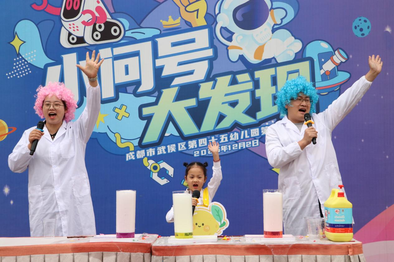 科学秀环节更是趣味十足。柠檬皮与气球相遇发出清脆声响,柠檬酸与小苏打相遇“火山喷发”,彩色泡沫层层涌动。直观有趣的实验让孩子们近距离感受科学魅力,激发探索欲。体智能律动带动全场互动,孩子们跟随节奏欢快舞动,尽显童真活力。