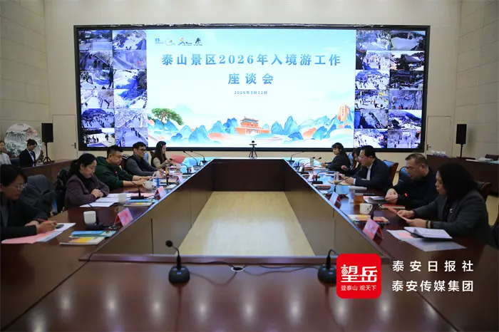 望岳讯 3月12日,泰山景区召开入境游发展座谈会,全面总结2025年入境游工作成效,兑现奖励扶持,分析当前发展短板,部署2026年重点工作,进一步凝聚政企媒多方合力,推动景区入境游高质量发展。