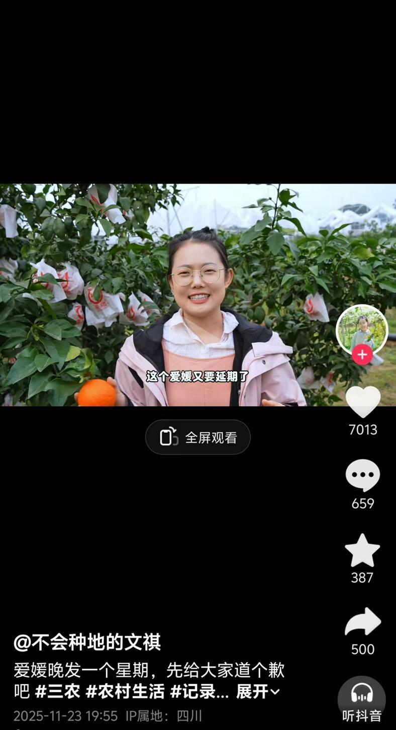 因降雨影响甜度,她两次推迟上市,还专门发视频跟网友道歉。这份真诚打动了网友,笑称她为“道歉区博主”,订单越来越多。